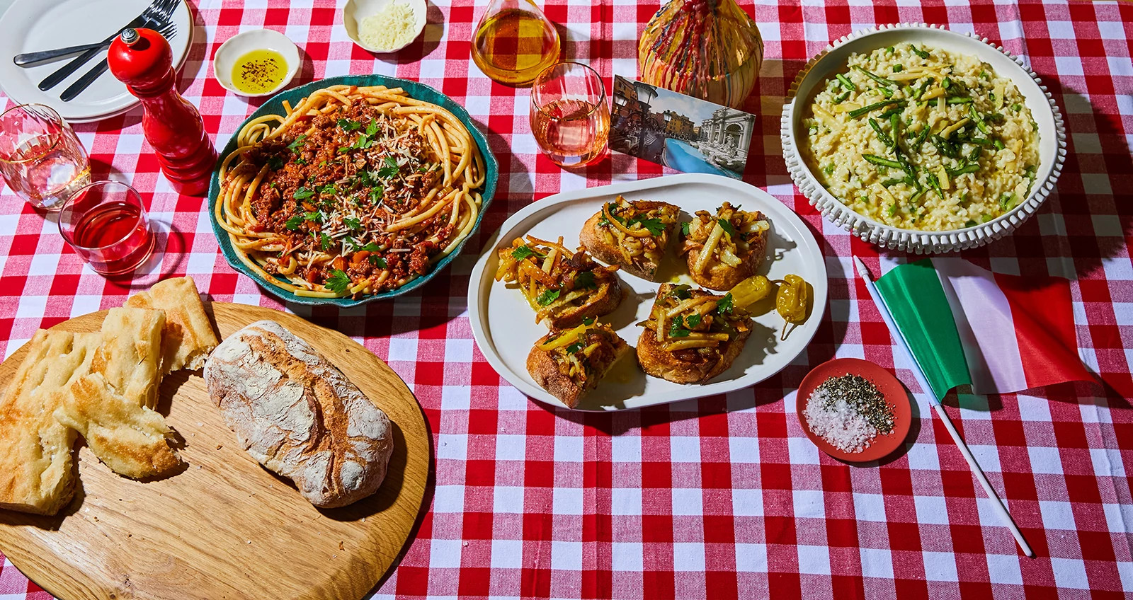 Asparagus and pea risotto with wine and bread